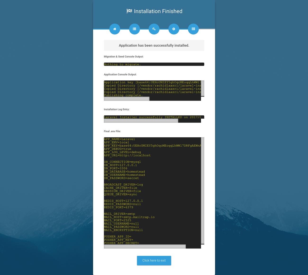 Do you want your clients to be able to install a Laravel project just like they do with WordPress or any other CMS? This Laravel package allows users who don't use Composer, SSH etc to install your application just by following the setup wizard. The current features are :
