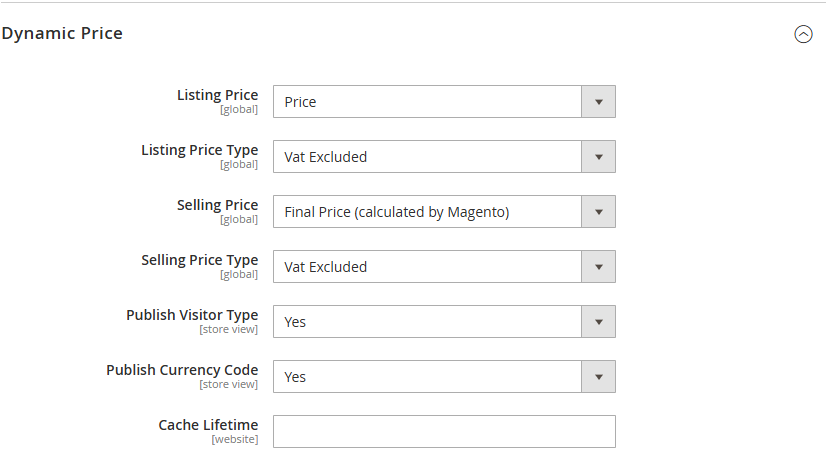 - Cache Lifetime: Time to live of dynamic price (used for caching)