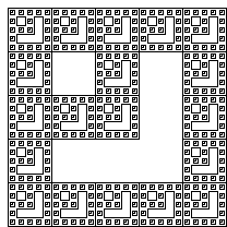×5 (pronounced Times Five) is a simple typeface, constructed from a 5 by 5 grid of squares. This concept is far from new: seasoned Web designers will remember Kottke’s Silkscreen, but examples can even be found in Bauhaus-era tiles. What makes this version different/special, is that the grid is used recursively to construct more complex structures. These structures are self-similar, and behave like fractals in that sense.