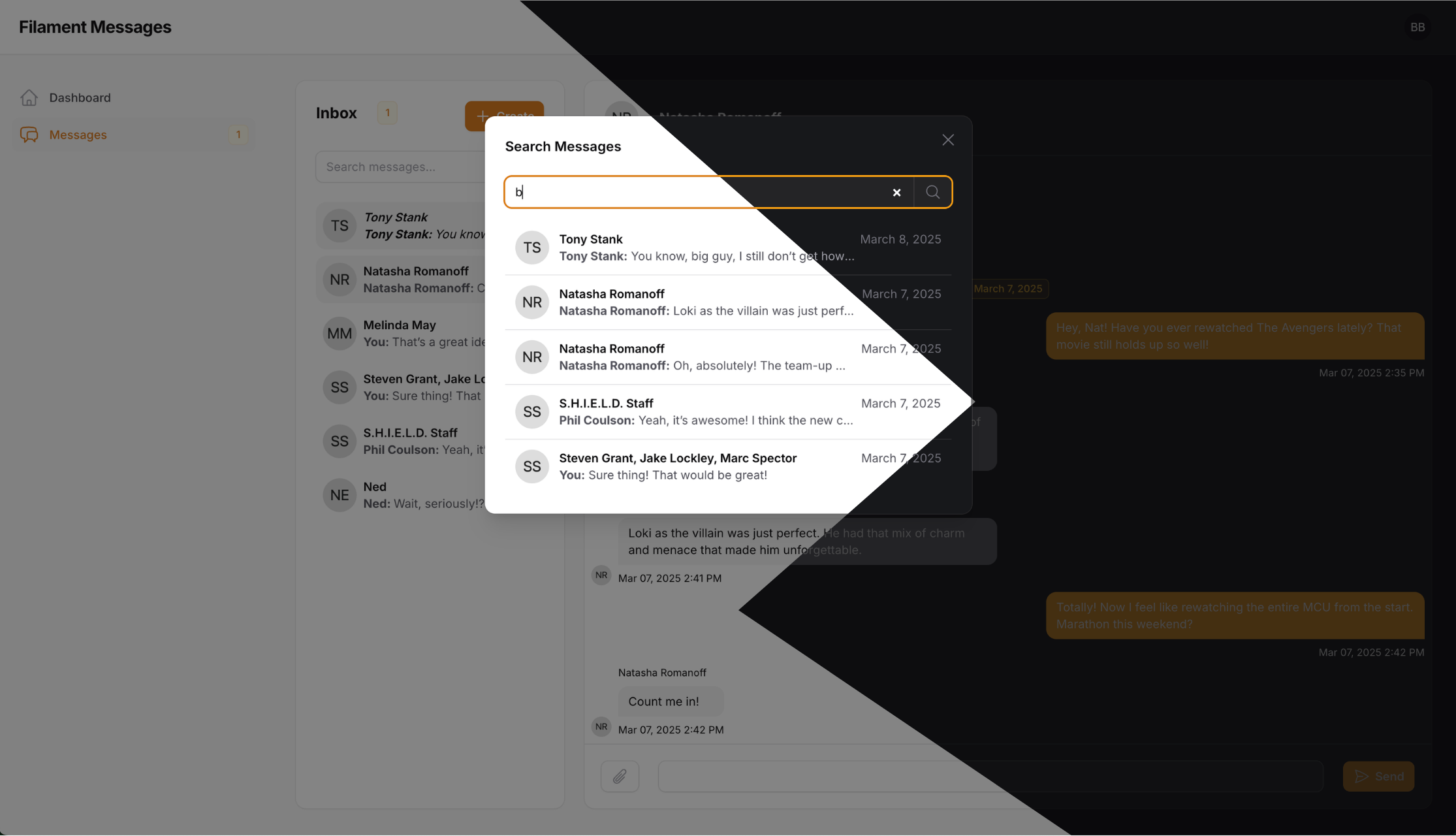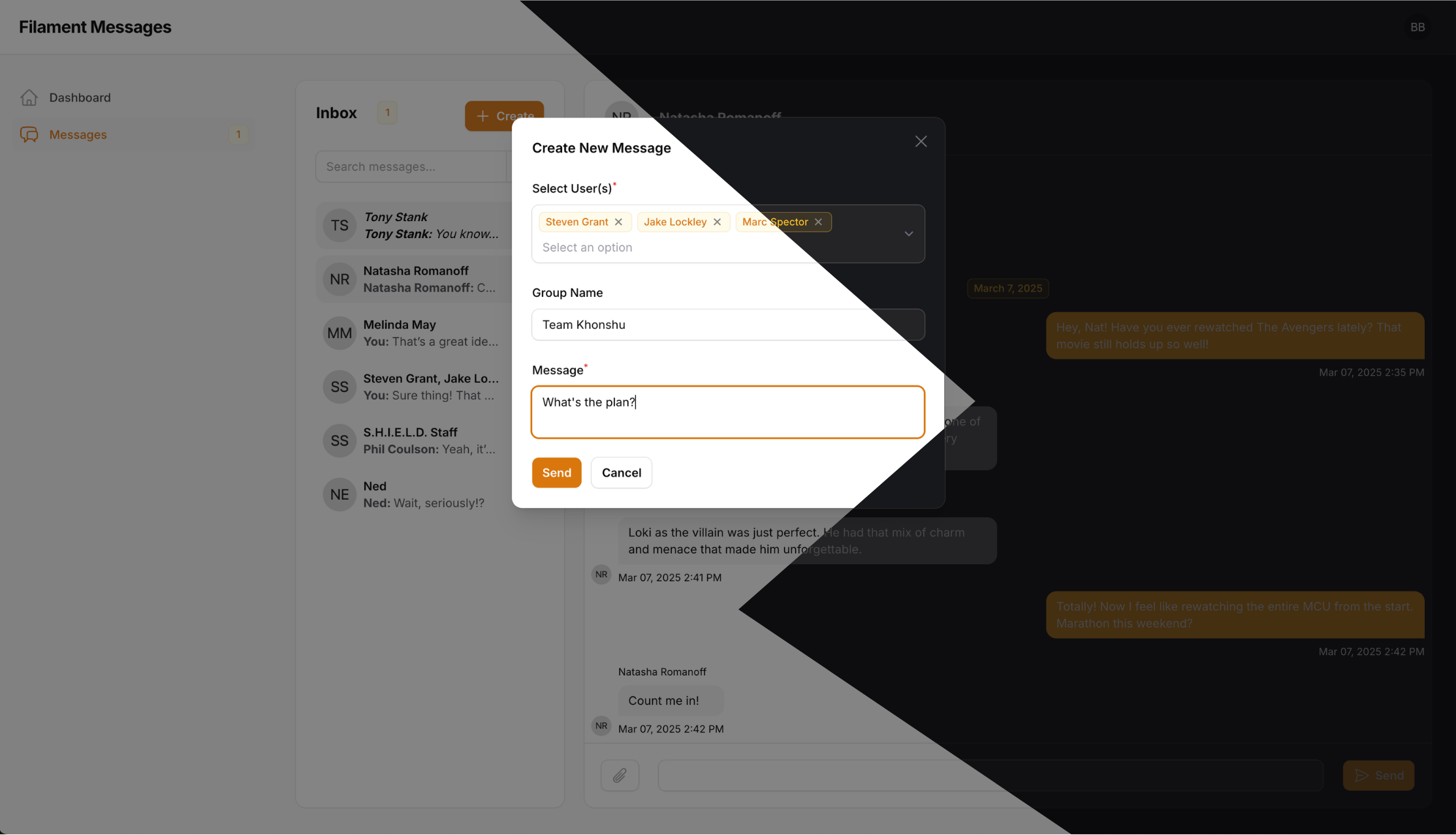 Filament Messages is a powerful messaging plugin for FilamentPHP. It provides an easy-to-use interface for real-time messaging within Filament admin panels.