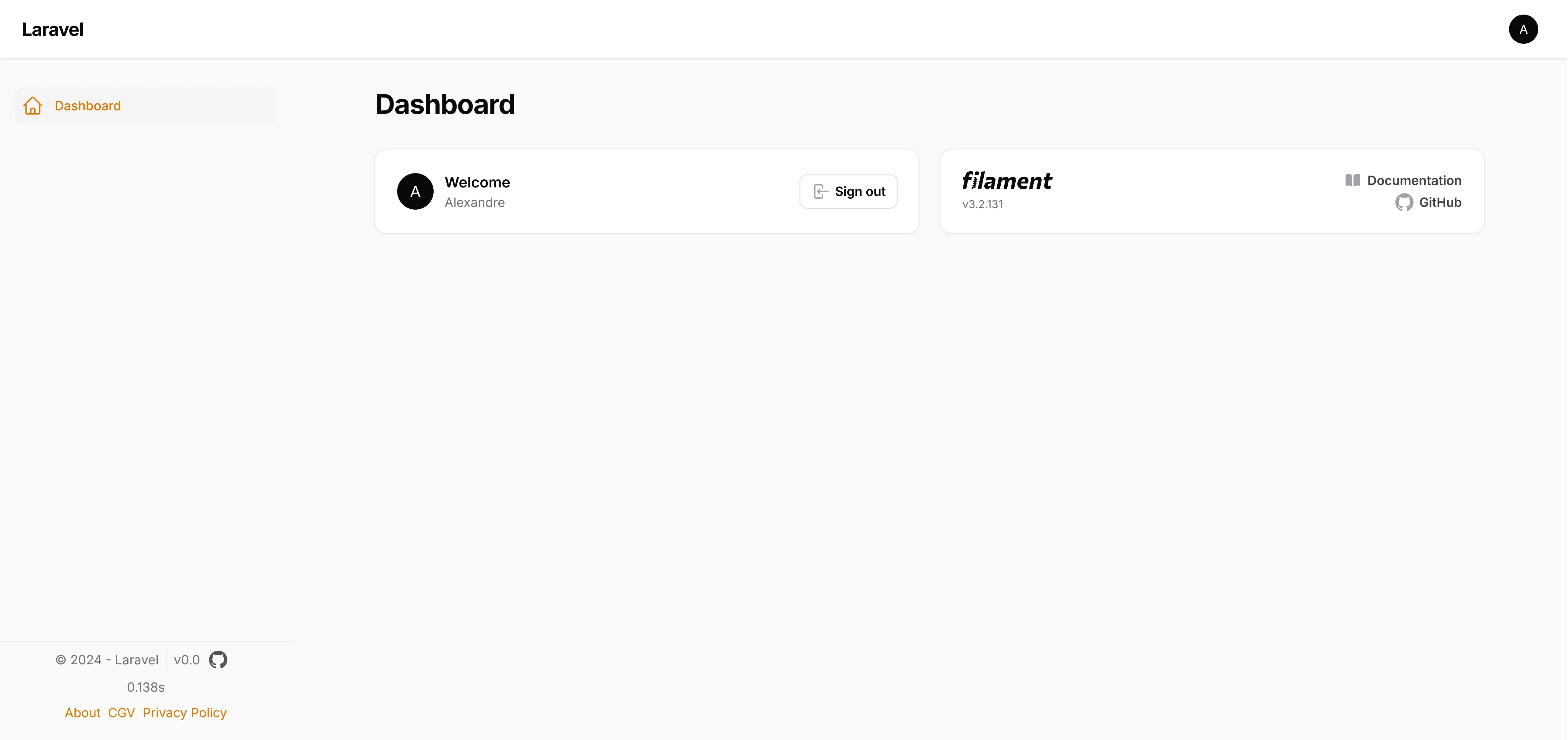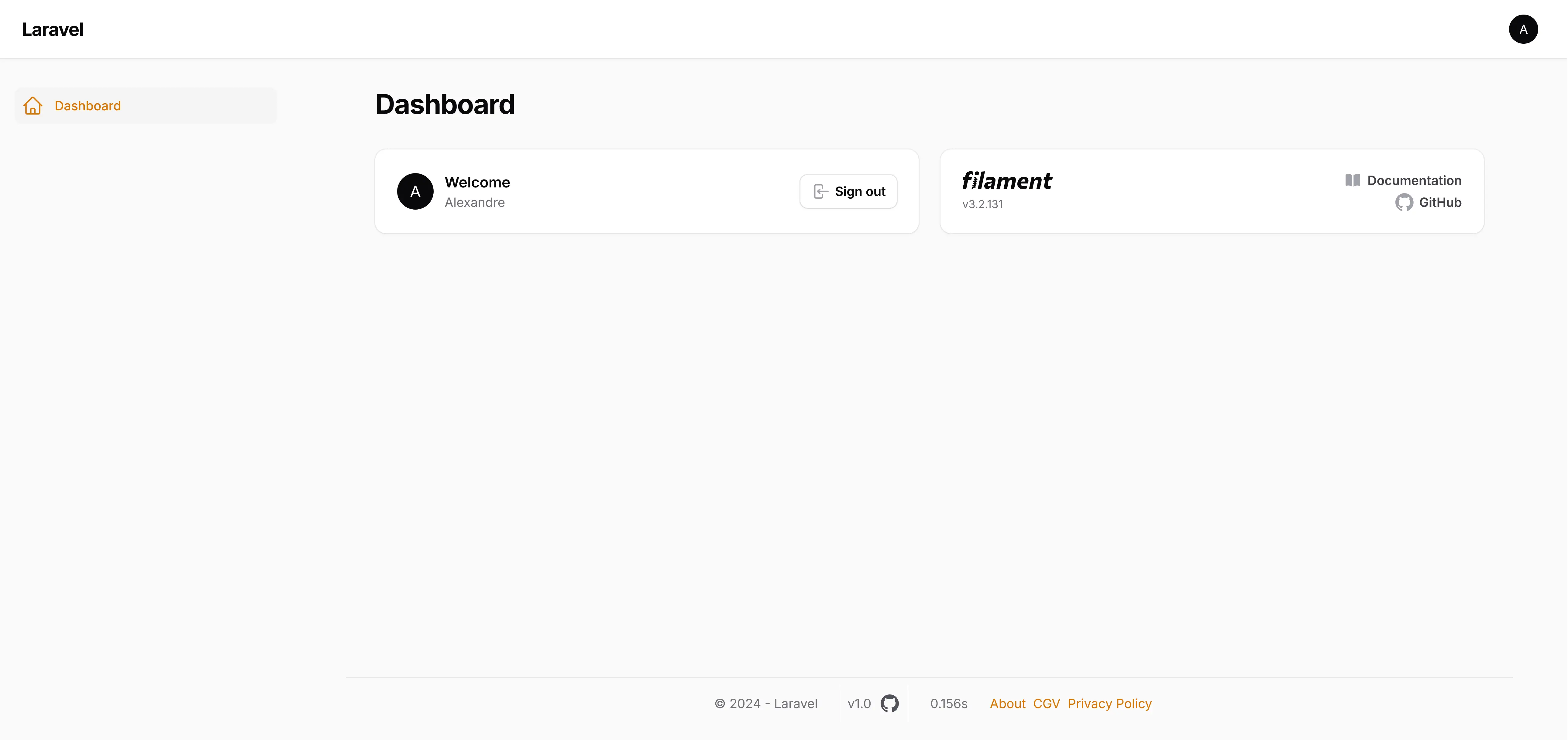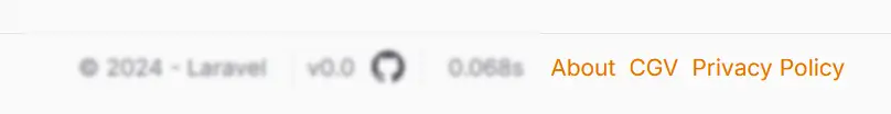 use Agelgil\FilamentEasyFooter\EasyFooterPlugin; ->plugins([ EasyFooterPlugin::make() ->withLinks([ ['title' => 'About', 'url' => 'https://example.com/about'], ['title' => 'CGV', 'url' => 'https://example.com/cgv'], ['title' => 'Privacy Policy', 'url' => 'https://example.com/privacy-policy'] ]), ])