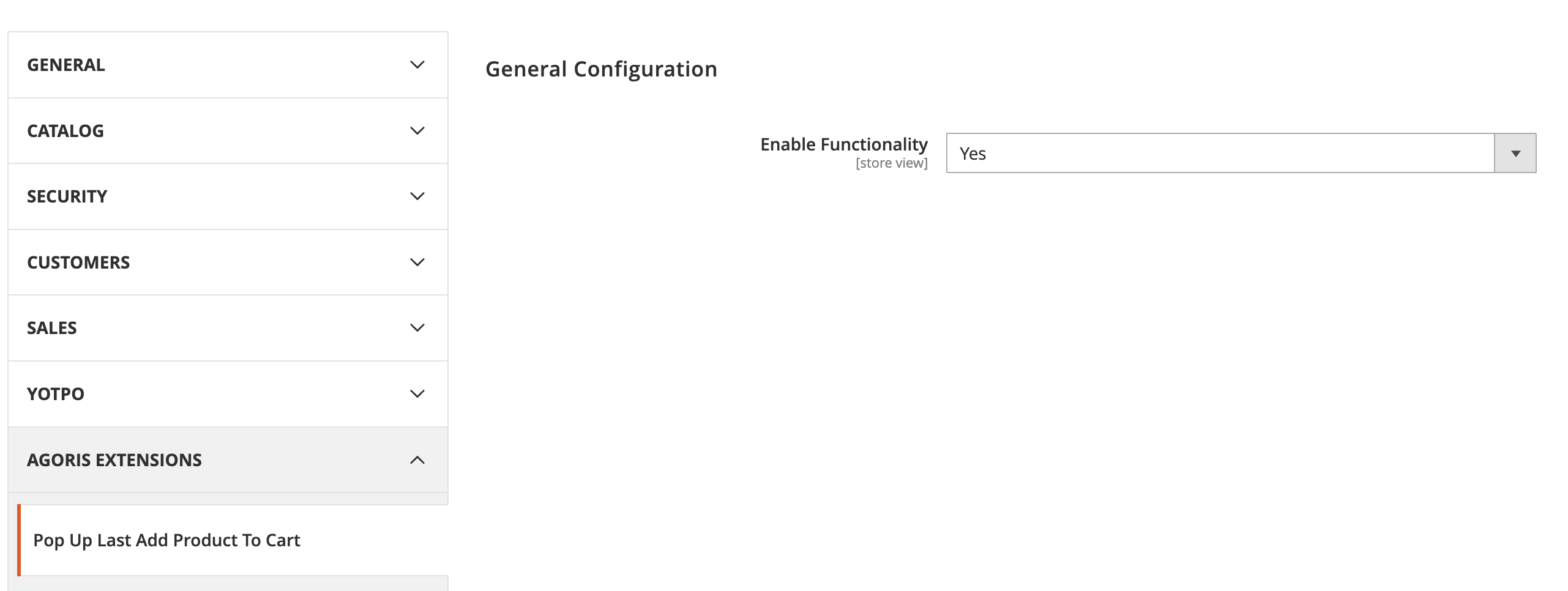 You can disable this solution: Login to Magento admin > Stores > Configuration > Agoris extenstions > Pop Up Last Add Product To Cart > General Options > Enable Functionality > Choose Yes to enable the module.