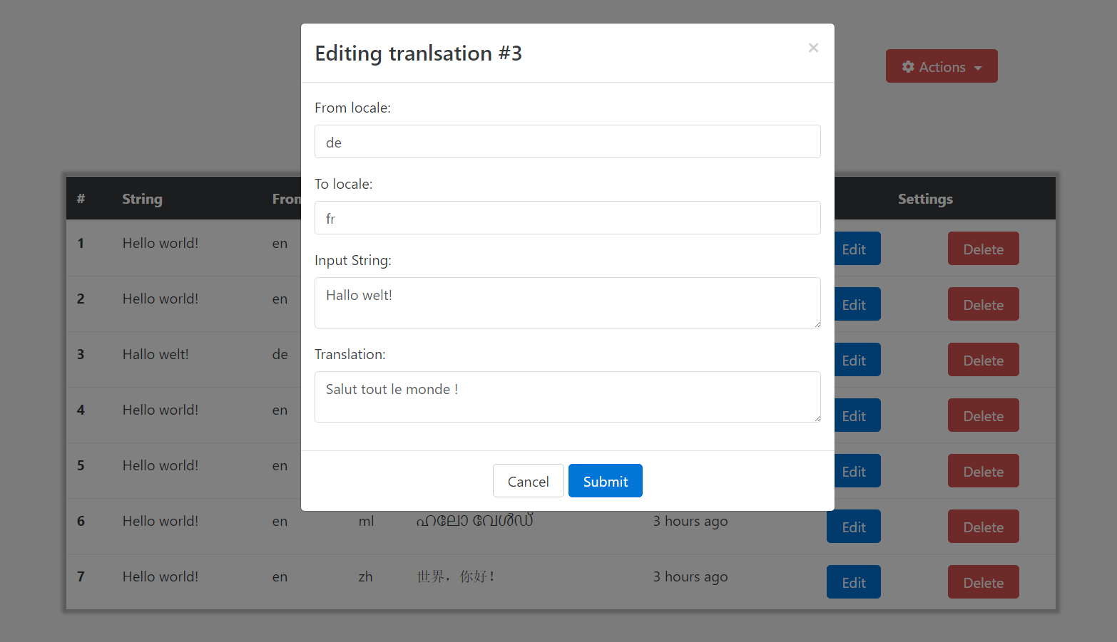 Here you can click translate and all files of resources/lang/en will be translated into languages you choose in the form input!