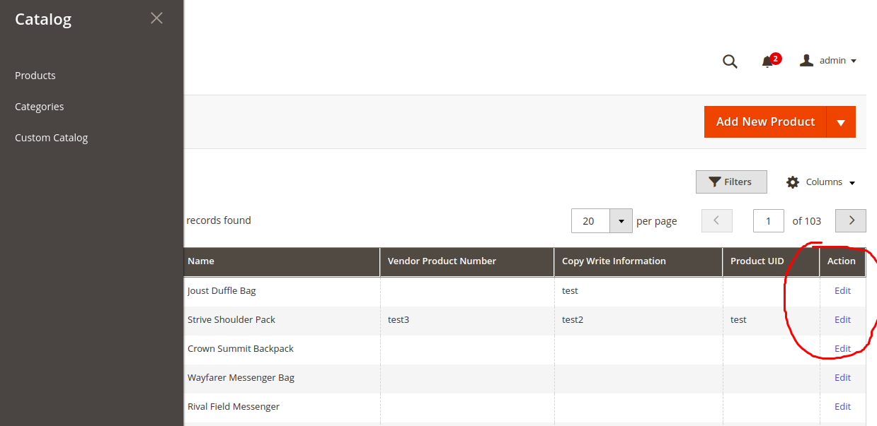 When we click on CustomCatalog link it should list all added products. And it should also have filtering options.