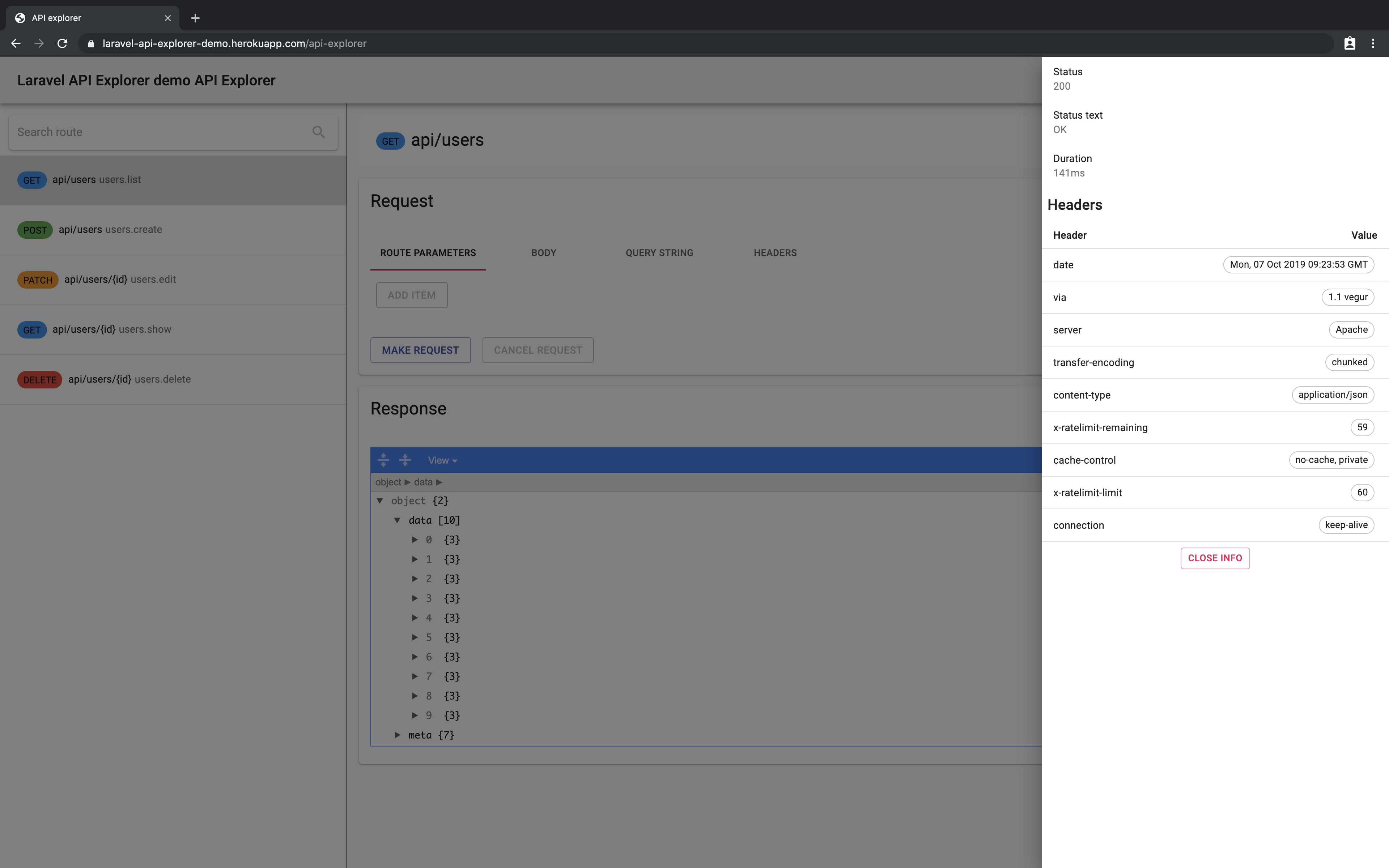 https://laravel-api-explorer-demo.herokuapp.com/api-explorer