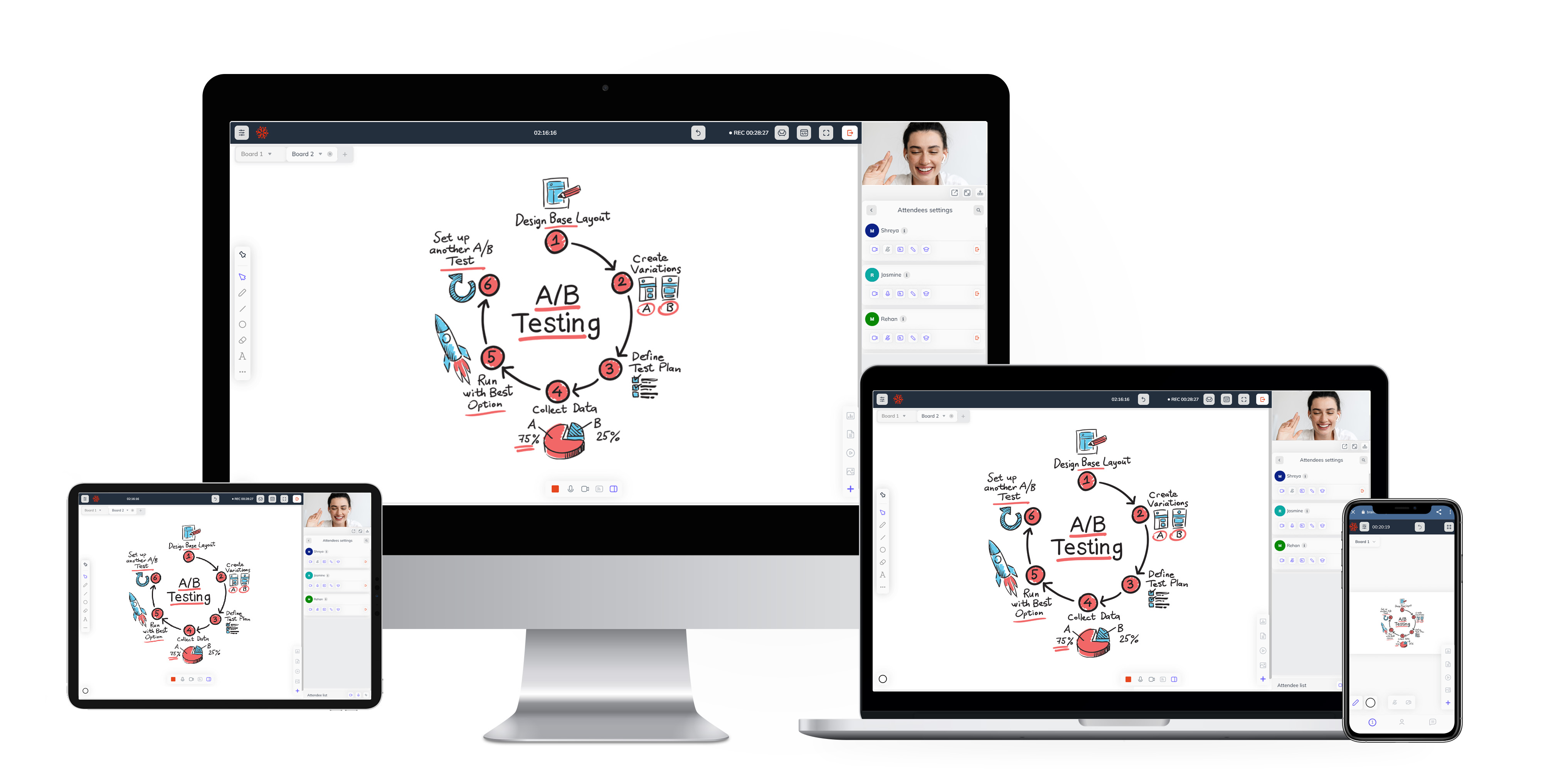 - Responsive whiteboard fits any screen and browser resolution for seamless same viewing experience by all attendees.