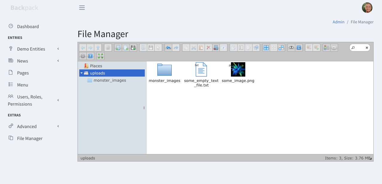 That's it. Hit refresh in your admin panel, and you'll find a new sidebar item pointing to the File Manager.