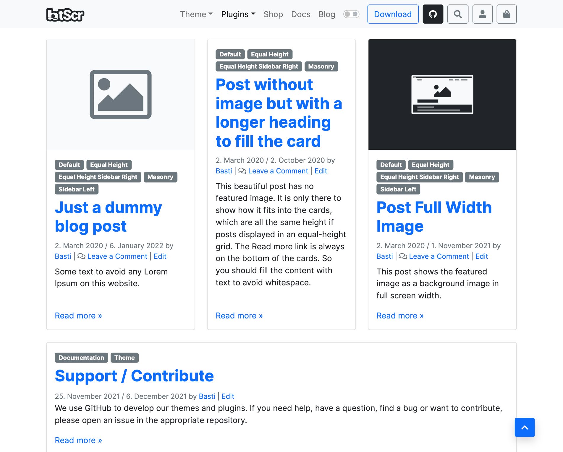 WordPress plugin to show posts, pages or custom-post-types in grid / list cards, heroes, accordion or tabs via shortcode in Bootscore theme.