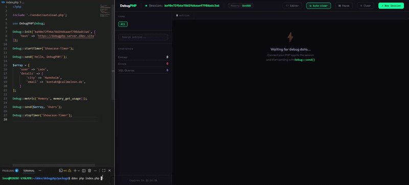 Want to keep your debug data on your own server? Use the DebugPHP Server: