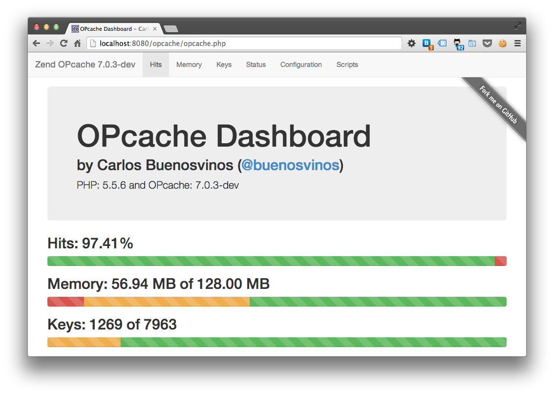 Set up properly and monitor your Zend OPcache with this dashboard that will help you checking memory, hits and status, configuring for optimal performance (warning you when cache full, validation, etc.) and reseting one or all scripts with one click.