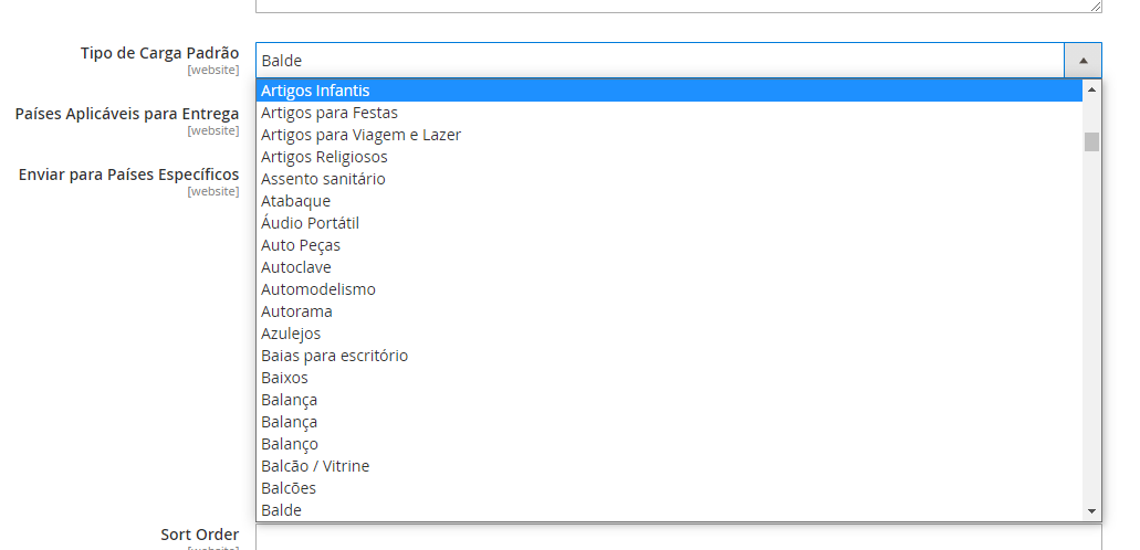 Após o salvamento das configurações do módulo, com o token válido, os tipos de carga serão baixados e estarão disponíveis nas configurações do produto e do módulo da Central do Frete. Caso o tipo de garga não esteja selecionado no produto, o módulo optará por enviar na cotação o tipo padrão selecionado nas configurações padrão do módulo.