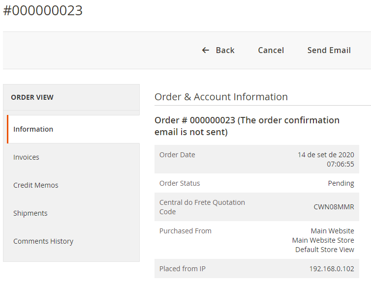 Para visualizar o código da cotação do frete, abra a visualização de pedido no painel administrativo da sua loja, como imagem abaixo.