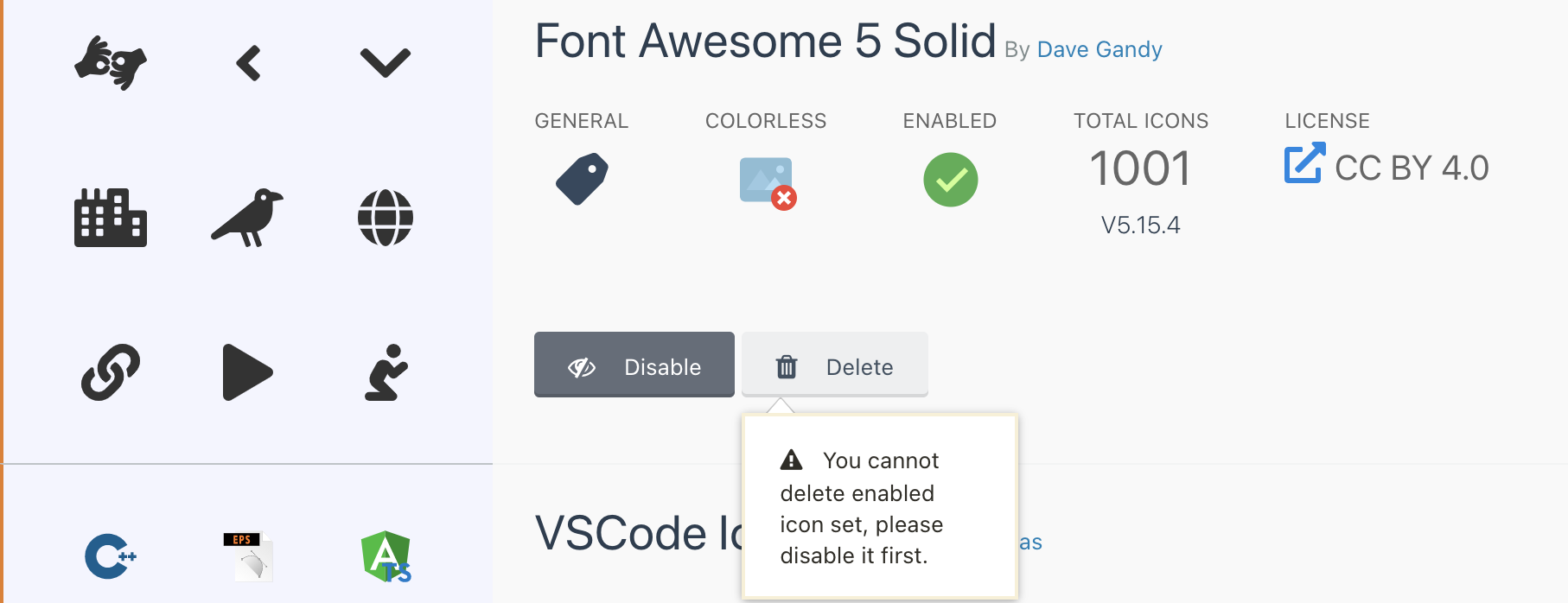 - Manage icon sets installation end deletion : allow the user to install and/or delete icon sets.