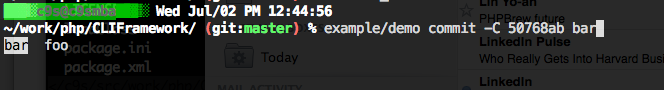 class CommitCommand extends CLIFramework\Command { public function brief() { return 'brief of bar'; } public function options($opts) { $opts->add('C|reuse-message:','Take an existing commit object, and reuse the log message and the authorship information (including the timestamp) when creating the commit.') ->isa('string') ->valueName('commit hash') // ->validValues([ 'static-50768ab', 'static-c2efdc2', 'static-ed5ba6a', 'static-cf0b1eb']) ->validValues(function() { $output = array(); exec("git rev-list --abbrev-commit HEAD -n 20", $output); return $output; }) ; // Runtime completion by setting up a closure for completion $opts->add('c|reedit-message:','like -C, but with -c the editor is invoked, so that the user can further edit the commit message.') ->isa('string') ->valueName('commit hash') ->validValues(function() { // exec("git log -n 10 --pretty=format:%H:%s", $output); exec("git log -n 10 --pretty=format:%H:%s", $output); return array_map(function($line) { list($key,$val) = explode(':',$line); $val = preg_replace('/\W/',' ', $val); return array($key, $val); }, $output); }) ; $opts->add('author:', 'Override the commit author. Specify an explicit author using the standard A U Thor <author@example.com> format.') ->suggestions(array( 'c9s', 'foo' , 'bar' )) ->valueName('author name') ; $opts->add('output:', 'Output file') ->isa('file') ; } public function arguments($args) { $args->add('user') ->validValues(['c9s','bar','foo']); // Static completion result $args->add('repo') ->validValues(['CLIFramework','GetOptionKit']); // Add an argument info expecting multiple *.php files $args->add('file') ->isa('file') ->glob('*.php') ->multiple() ; } public function init() { $this->command('foo'); // register App\Command\FooCommand automatically $this->command('bar', 'WhatEver\MyCommand\BarCommand'); $this->commandGroup('General Commands', ['foo', 'bar']); $this->commandGroup('Database Commands', ['create-db', 'drop-db']); $this->commandGroup('More Commands', [ 'foo' => 'WhatEver\MyCommand\FooCommand', 'bar' => 'WhatEver\MyCommand\BarCommand' ]); } public function execute($user,$repo) { $this->logger->notice('executing bar command.'); $this->logger->info('info message'); $this->logger->debug('info message'); $this->logger->write('just write'); $this->logger->writeln('just drop a line'); $this->logger->newline(); return "Return result as an API"; // This can be integrated in your web application } }