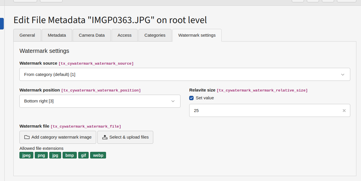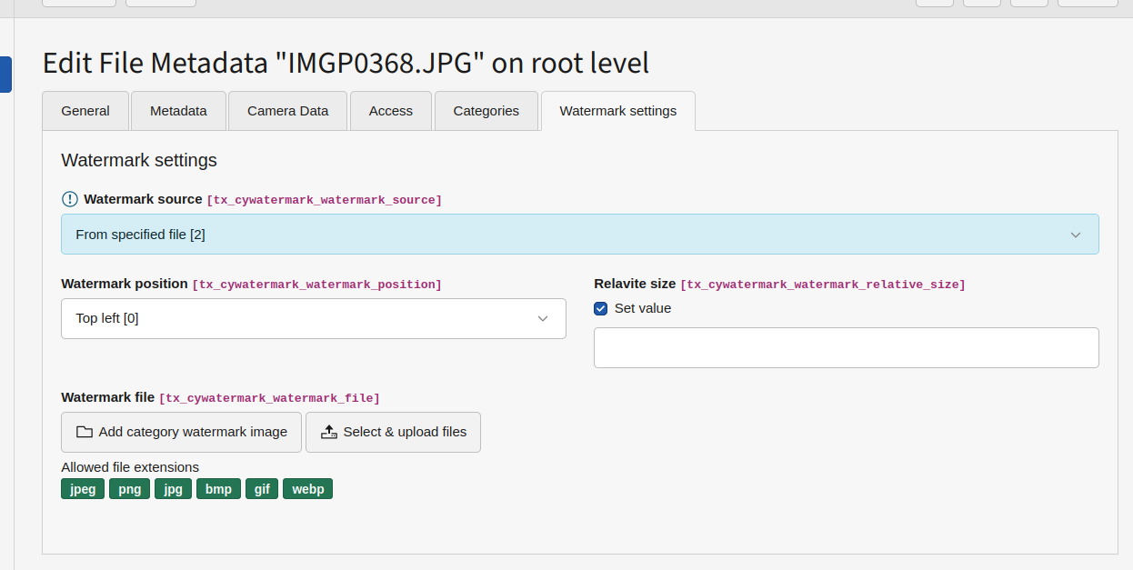- 0.9.2 FIX Cached images with watermark cleaned if the categories changed form the file meta data.