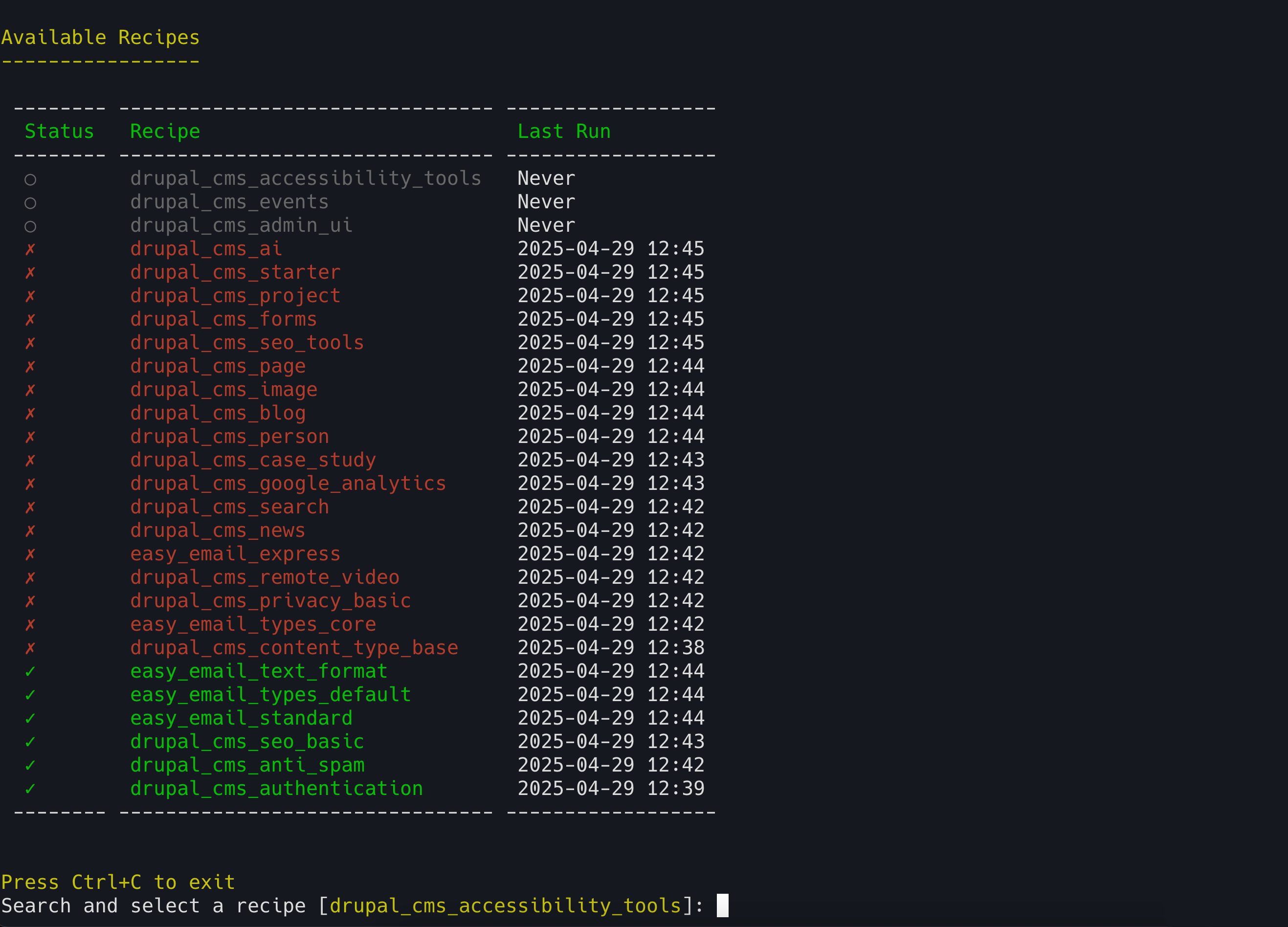 $ vendor/bin/drupal-recipe-manager recipe
