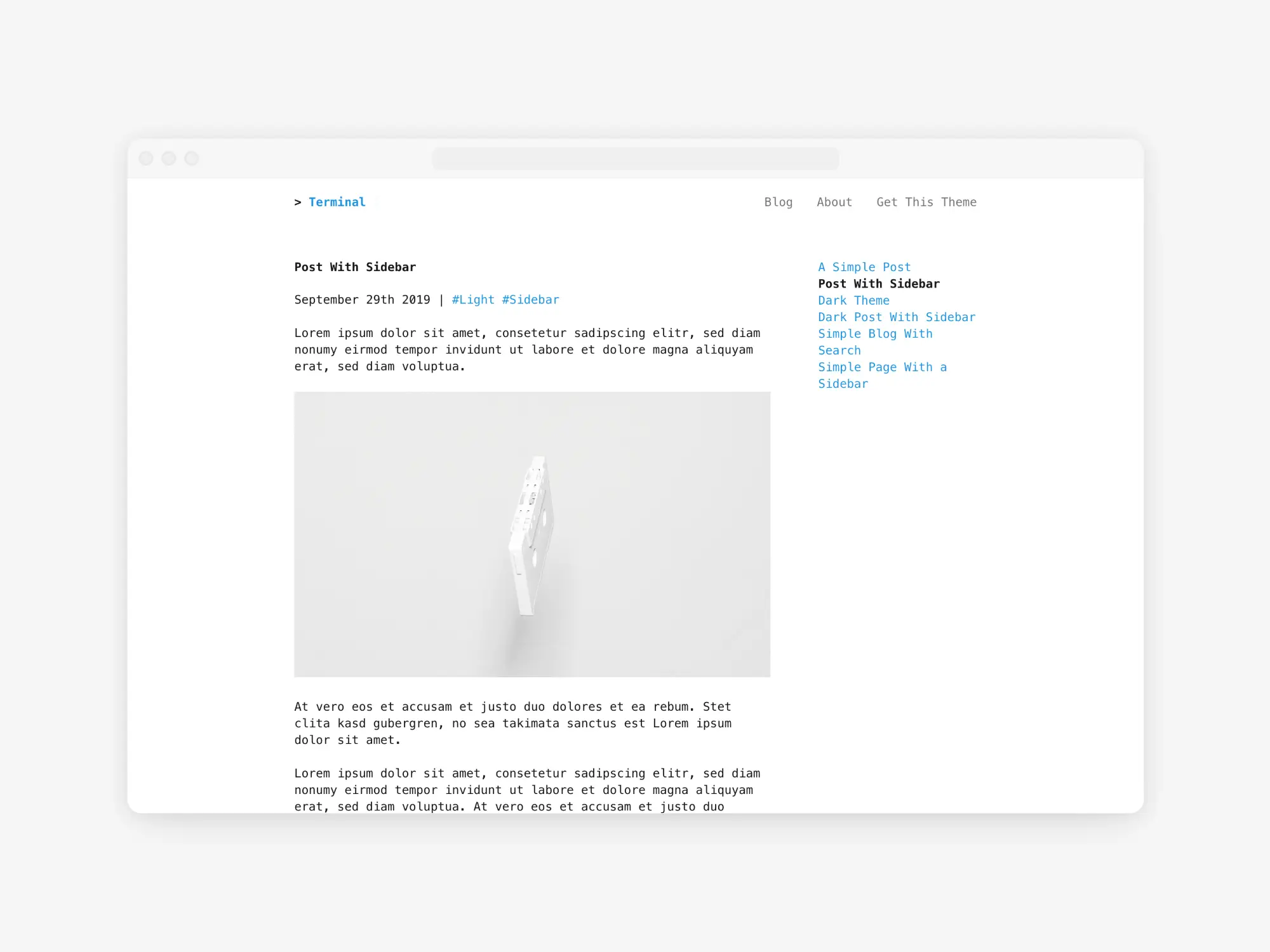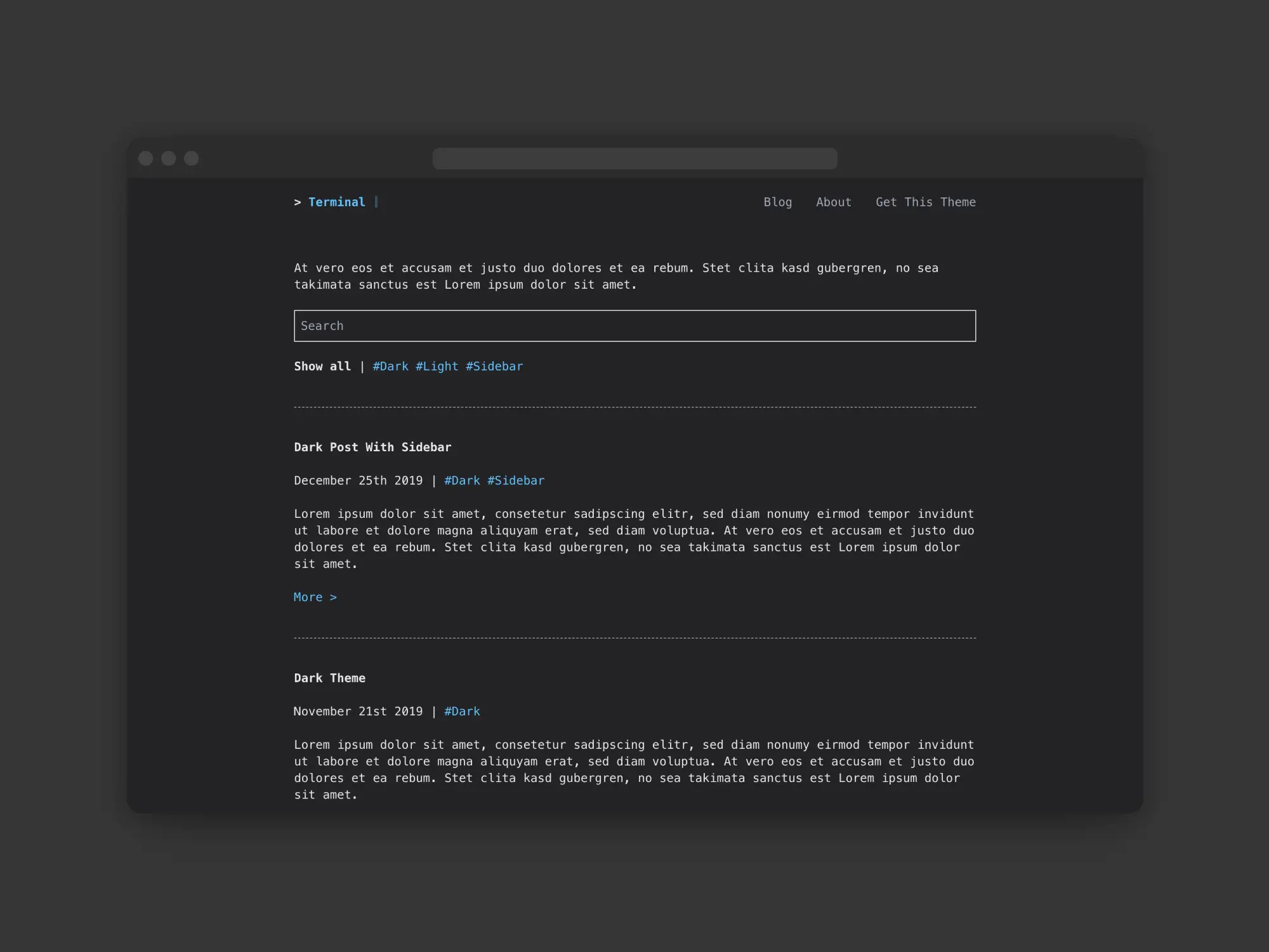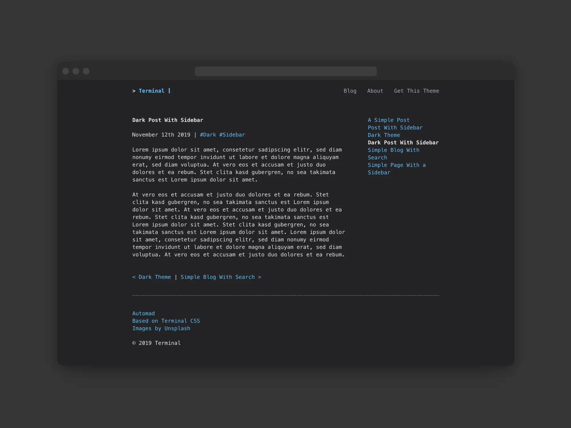 A minimal and responsive blog theme for the Automad CMS based on the beautiful Terminal CSS framework, including a light and a dark color scheme. Check out the demo page and all available templates here.