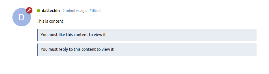 : hides the content until the user likes the post[REPLY]content to hide[/REPLY]