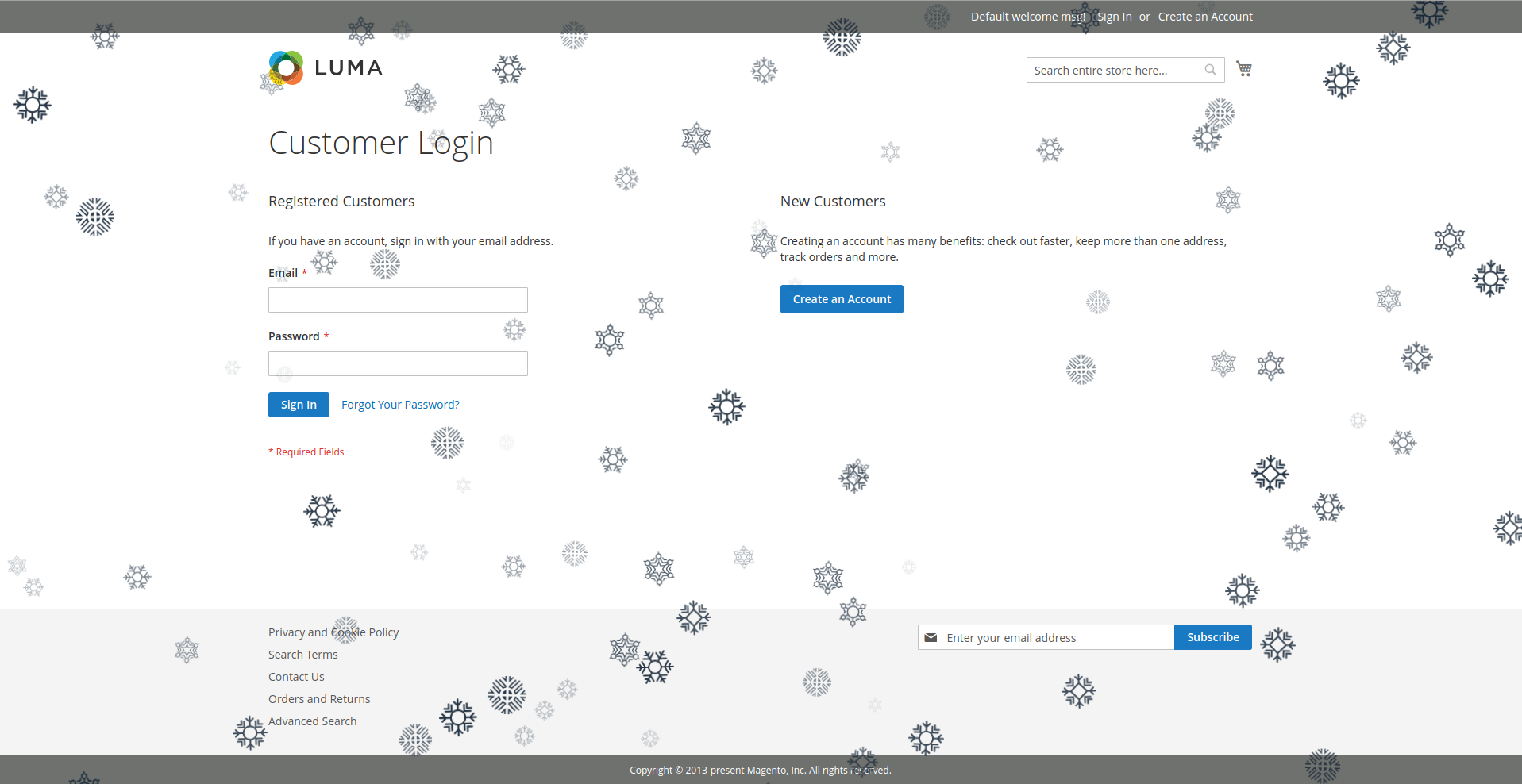 Magento 2 module that will let add snowflakes on your Magento2 storefront.