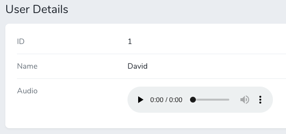 For use when you are storing an audio file and want to listen to it from within Nova. It is built on the core File Field field type. See here for more info