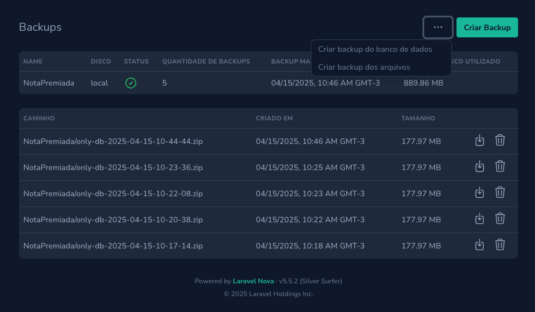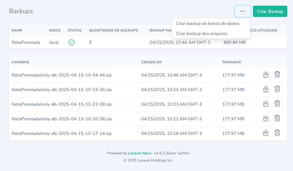A Laravel Nova 5 tool that allows administrators to manage application backups directly from the Nova interface.