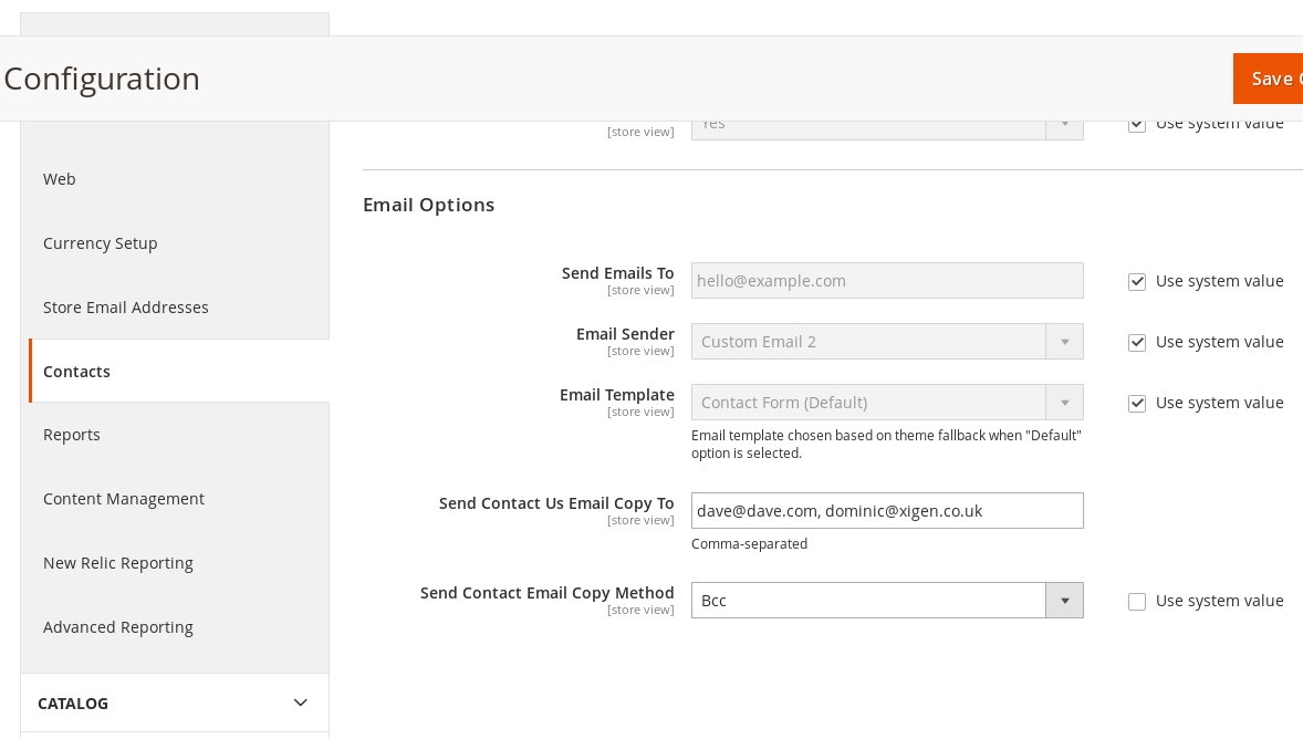 Email Copy To and BCC option in admin for contact us form