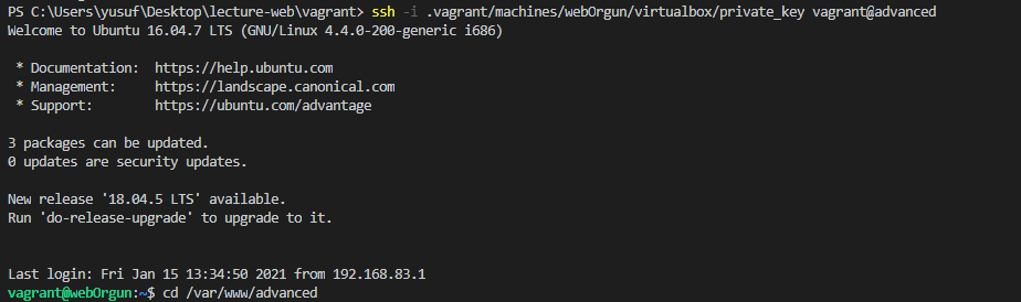 Not: Buradaki webOrgun benim vagrant makinamın adı. vagrant@"advanced" deki advanced ise benim yiinin yüklü olduğu