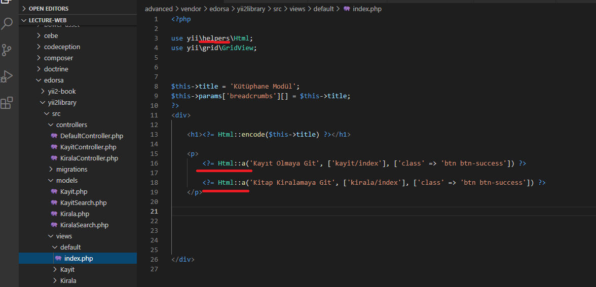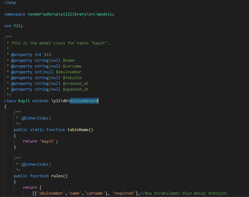 Yii2 KÜTÜPHANE MODÜLÜ