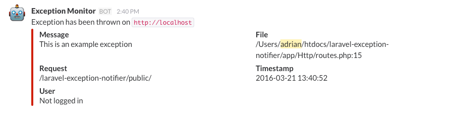 Little Laravel package to notify you about exceptions in your application.