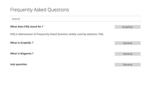 Hereby FAQ module provides to list FAQs with the categories. FAQs can be added through Content > FAQ section.