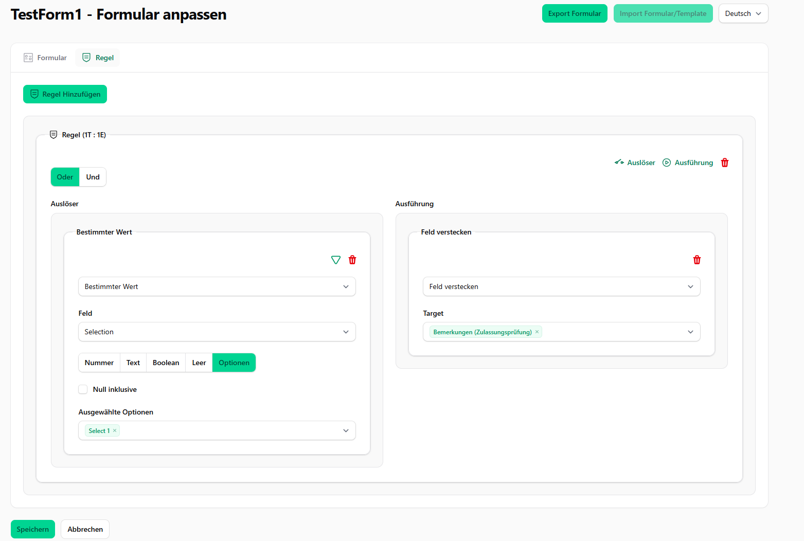 - 🔁 Reactive Rules: Set up rules that react to answers by changing field visibility or modifying selectable options.