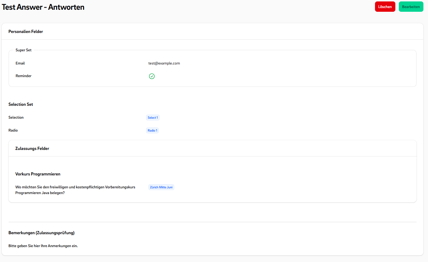 You can embed CustomForms or their answers in various parts of your application using specialized components. Below