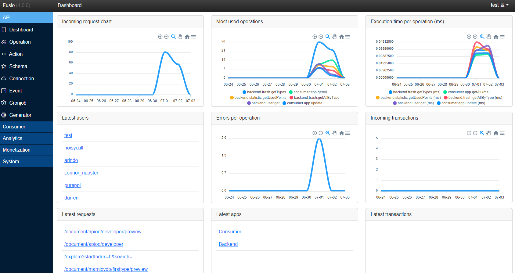 Fusio includes a flexible app system that lets you install various web-based apps to support different API-related use cases. These apps are typically simple JavaScript frontends that interact with Fusio's internal API.