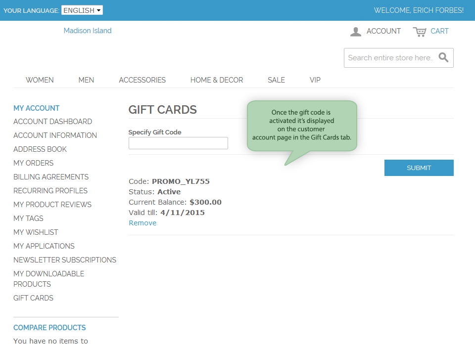 Your customers can use gift card as payment method for online and offline order. With the offline order, only need to give gift code or print it out as normal gift voucher. It is so convenient, right?