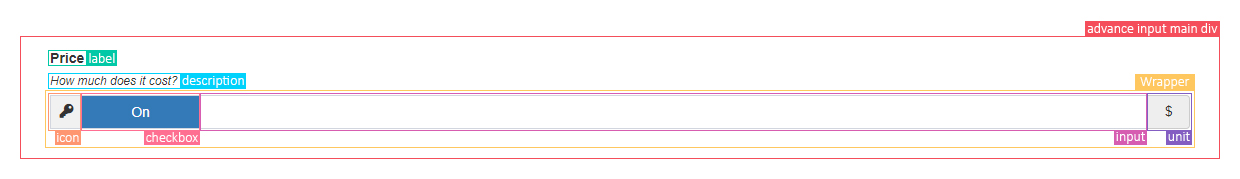 <?php echo Text::widget([ "name" => "test-name", "icon" => "fas fa-key", "unit" => "$", "checkbox" => true, "label" => "Price", "description" => "How much does it cost?", "wrapperOptions" => ["style" => "border: 2px dashed red; padding : 10px;"] ]); ?>