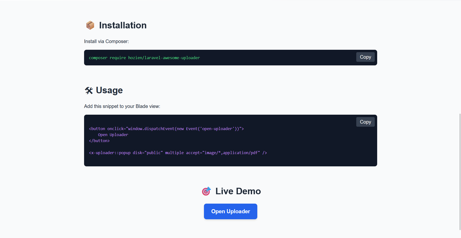 composer require hozien/laravel-awesome-uploader