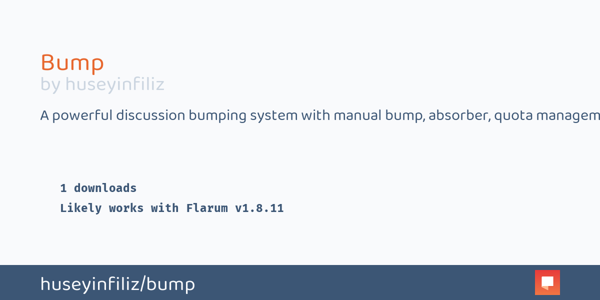 A powerful discussion bumping system for Flarum forums. Allow users to bump discussions to keep them visible, with comprehensive quota management, cooldown controls, and group-based permissions.