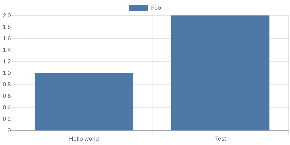$chart = new QuickChart(array( 'width' => 500, 'height' => 300 )); $chart->setConfig('{ type: "bar", data: { labels: ["Hello world", "Test"], datasets: [{ label: "Foo", data: [1, 2] }] } }');