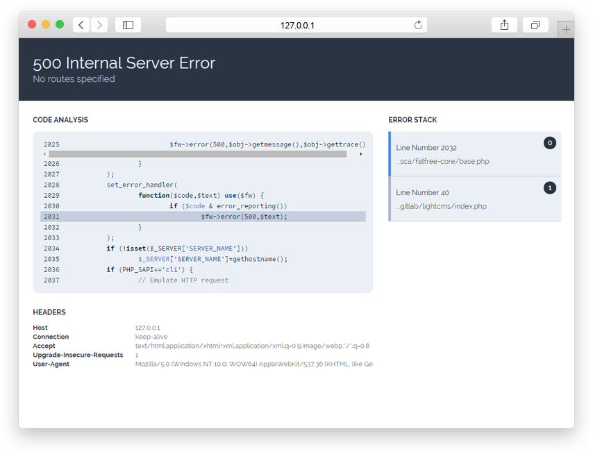 Pretty error handling for Fat-Free Framework