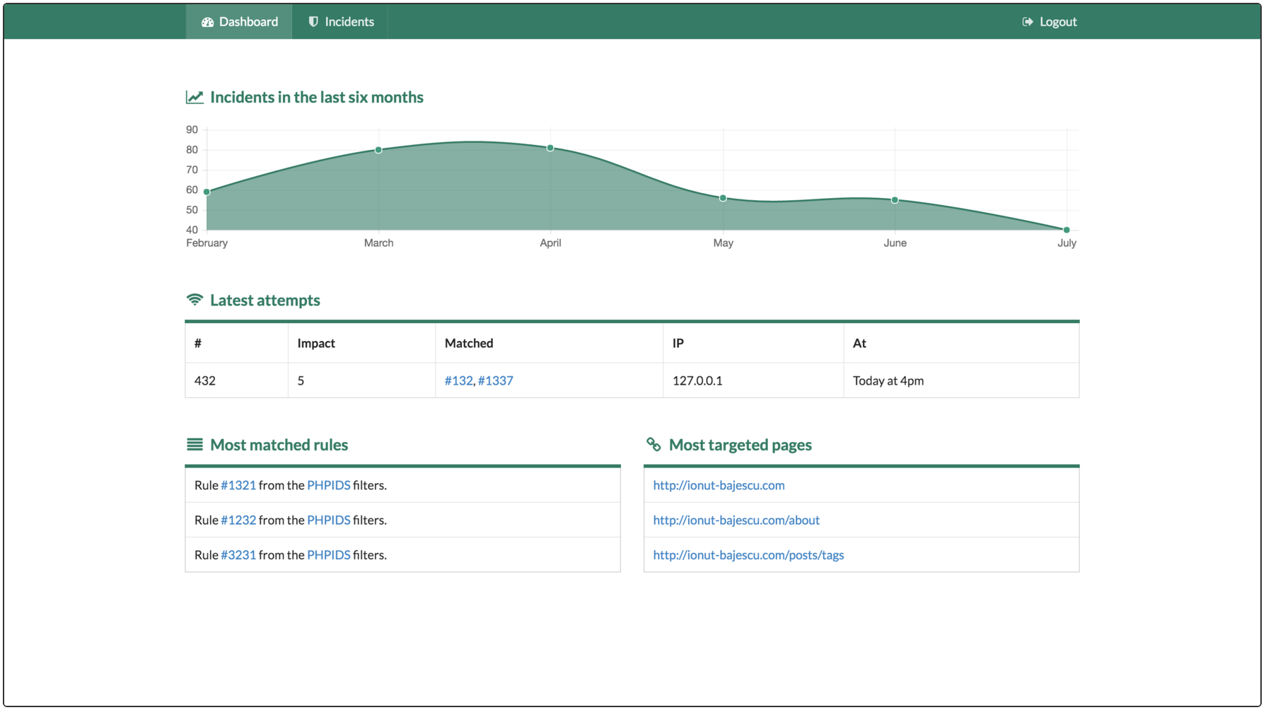 And it also has a nice dashboard that provides you in real-time with useful statistics about the latest attempted intrusions on your website.