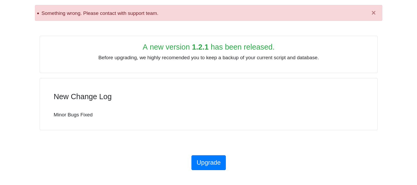 - After clicking Upgrade button, it will upgrade process automatically then will see a success message and new version number will setup in your application automatically.