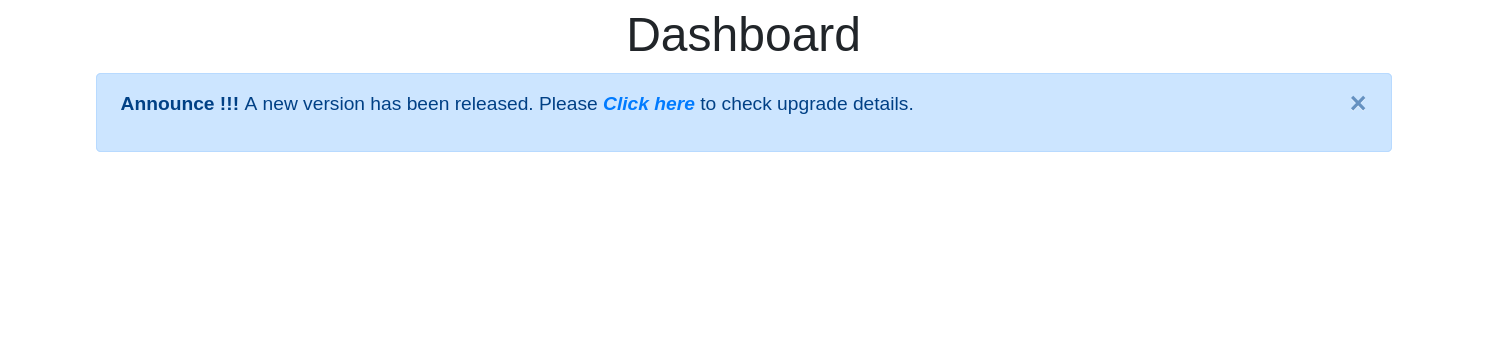 - Goto the url to access: [your_domain_name.com/version-elevate-dashboard]() - If any new version release, then client will get a notification message in dashboard. They have to click on Click Here option to see the details page.Version Upgrade Page