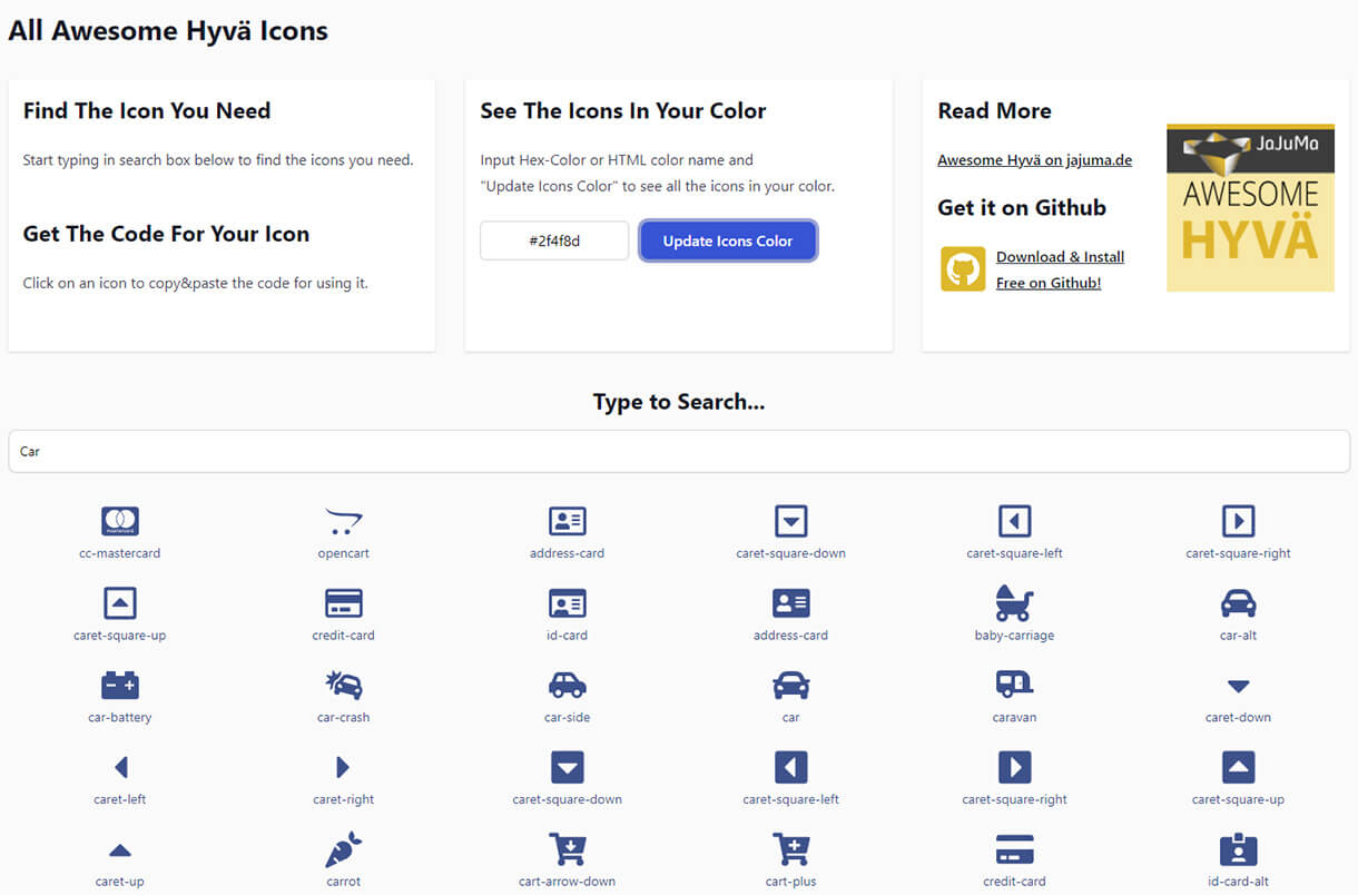 Awesome Hyvä extension by JaJuMa allows using Font Awesome 5 & Font Awesome 6 icons as SVGs on Magento 2 & Mage-OS sites using Hyvä Themes.