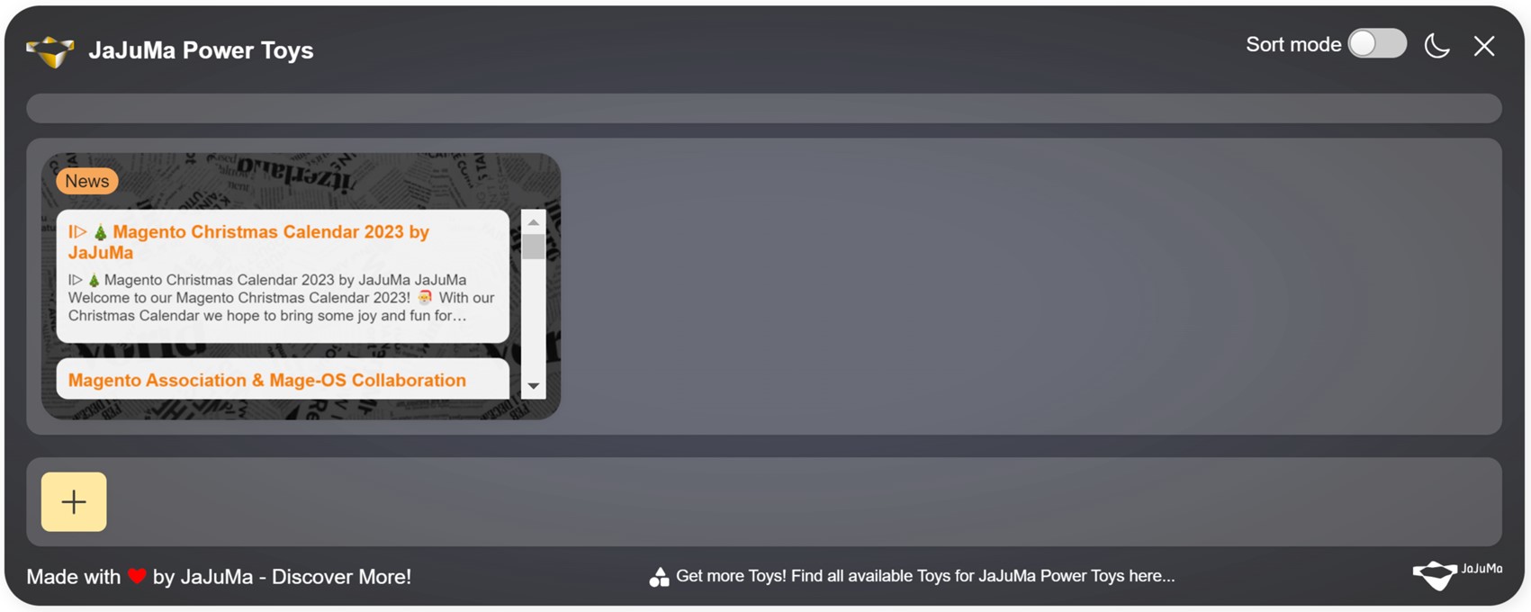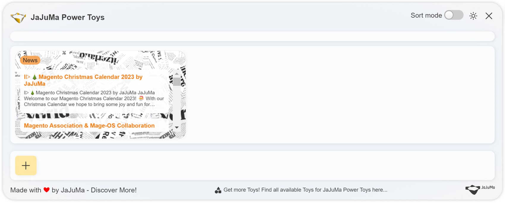News Power Toy for Magento 2 by JaJuMa is a dashboard toy showing news feeds in your Magento store.