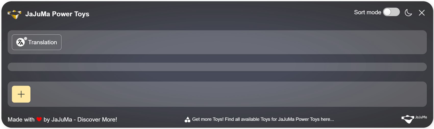 When click on this button, the Power Toys Panel will open