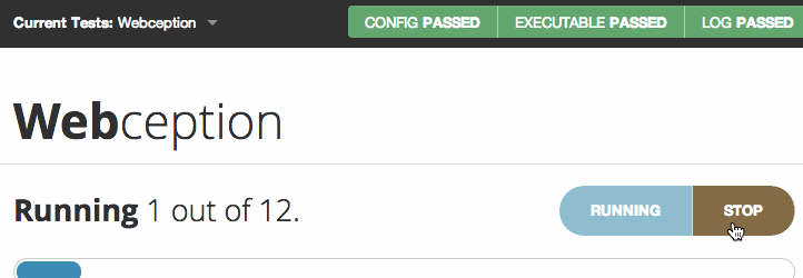 If you've configured everything correctly, Webception will show all your available tests. Just click START to run everything!