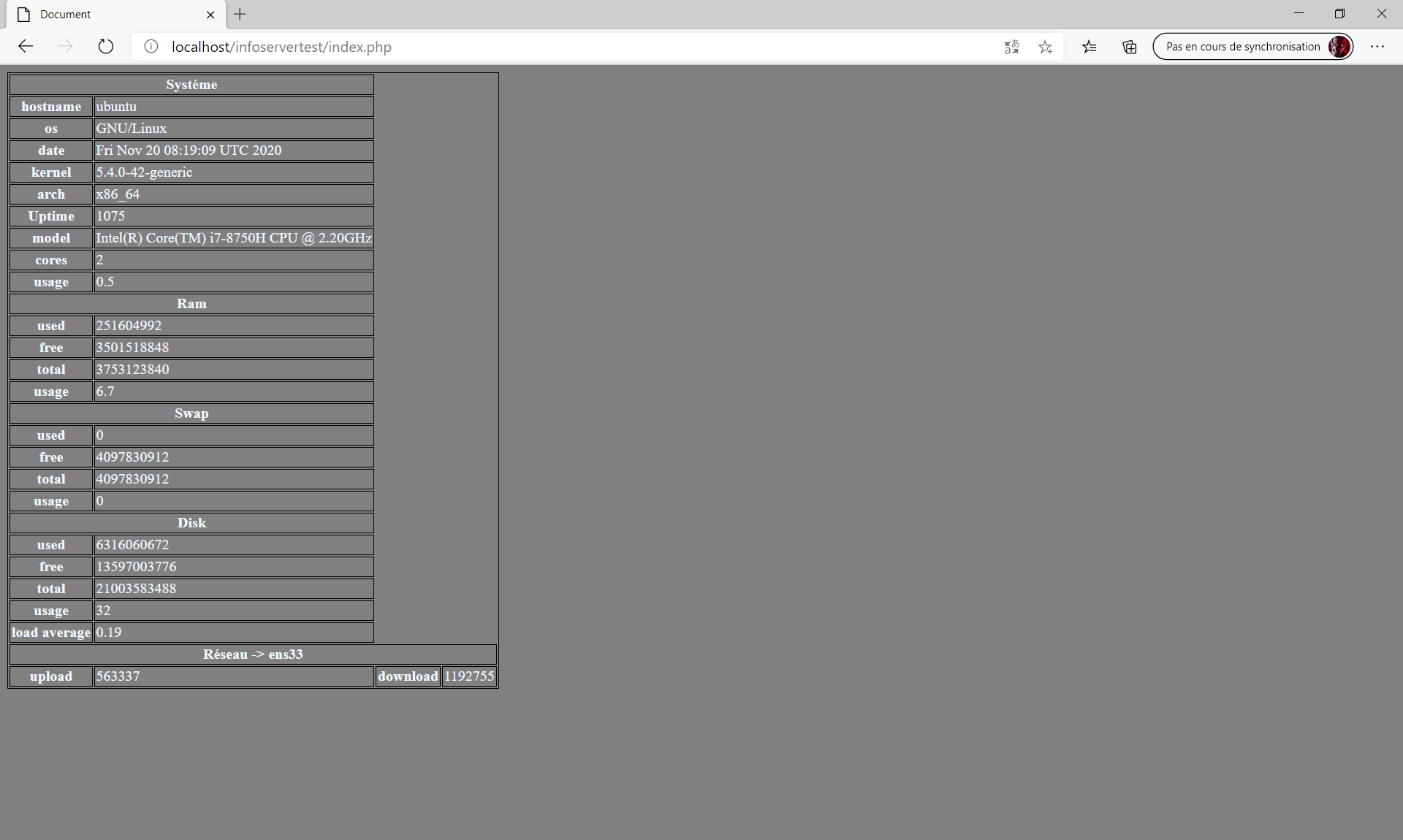 Récupère les informations de base d'un serveur linux: