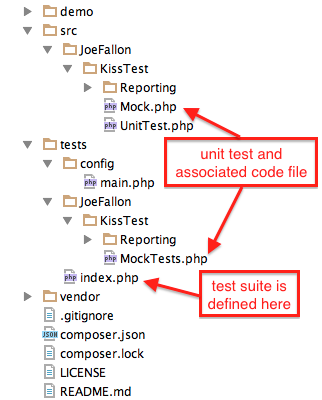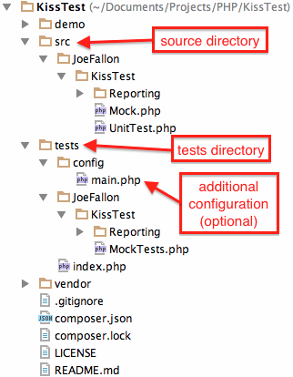 Since KissTest uses just PHP for configuration there are an infinite number of ways to configure and set up a test suite. The following method is simple and straight forward.