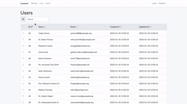 Notice how the column is still searchable() and sortable(), because the Car model contains a paint_color attribute!