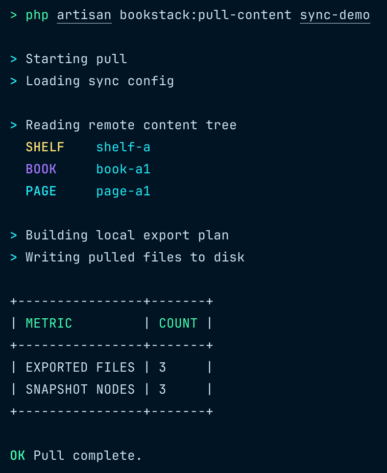 php artisan bookstack:pull-content /path/to/content